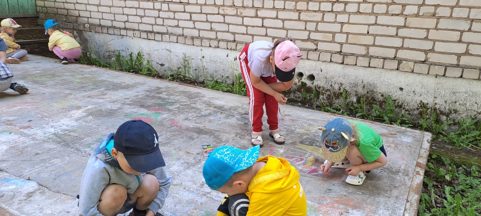 В канун празднования «Дня защиты детей» - 1 июня, педагоги средней группы подготовили и разместили на стенде для родителей информационную папку-передвижку. Для ребят было организовано коллективное рисование на асфальте «Счастливое детство». После под руководством педагога дети изготовили своими руками праздничную открытку для своих близких.